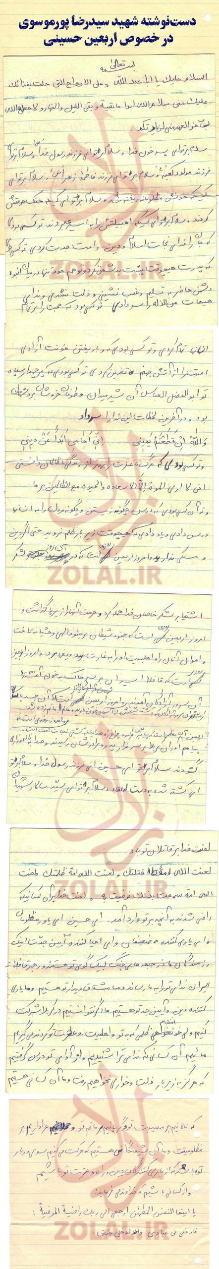دست‌نوشته شهید سیدرضا پورموسوی در خصوص اربعین حسینی